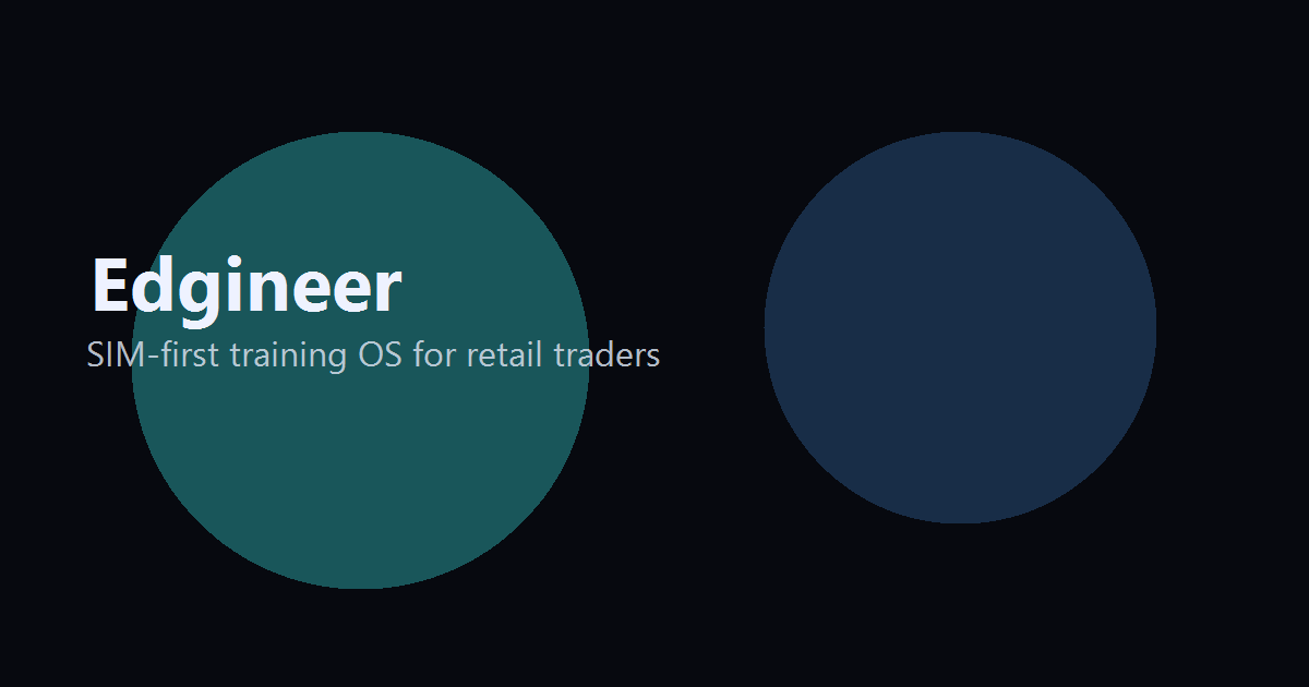 Edgineer is a SIM-first training operating system for retail traders. The platform focuses on process discipline using replay audit trails, safe install controls, and certification signals that prioritize behavior quality over hype. Current release scope is educational workflow infrastructure only: no broker key collection, no auto-trading claims, and no guaranteed outcomes.